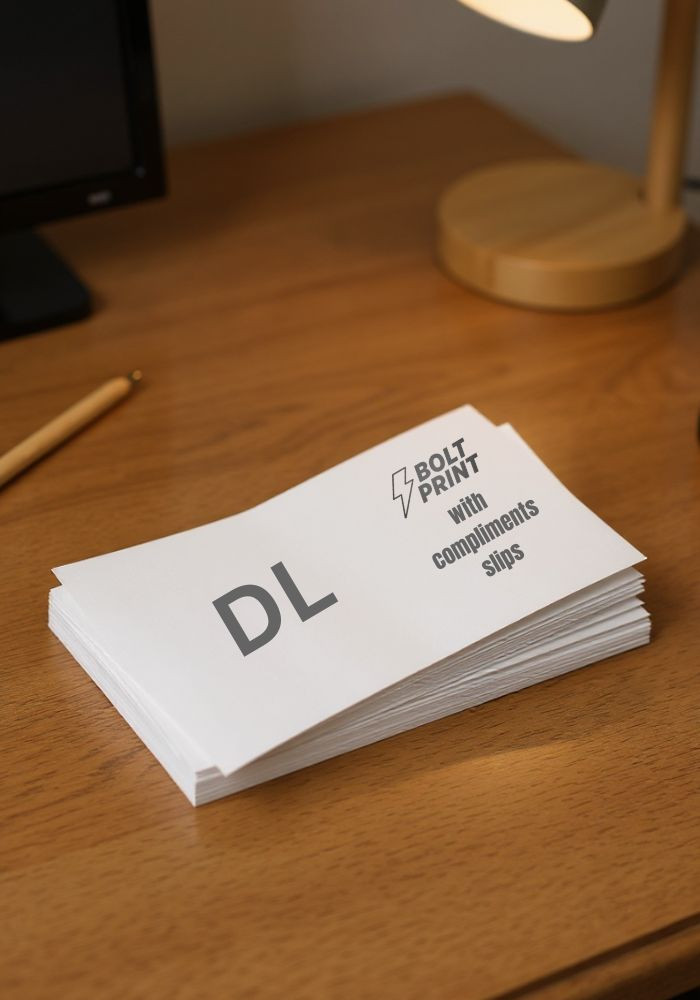 At Bolt Print, we prioritise quality and professionalism in every print job. Our DL With Compliments Slips are printed on premium papers, ensuring a refined and sophisticated finish that will leave a lasting impression. Perfectly sized at 99 x 210 mm, they fit seamlessly into DL envelopes, making them a practical choice for everyday business needs.