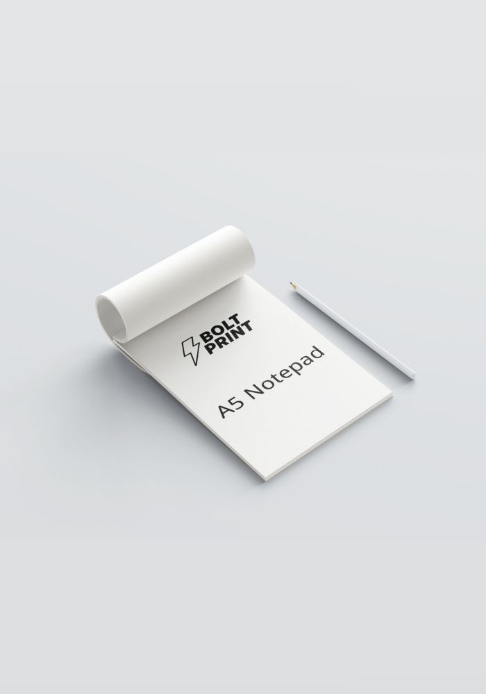 Get the perfect companion for note-taking with Bolt Print's A5 Notepads. Customisable and practical, these notepads are designed to provide a reliable surface for your daily scribbles, to-do lists, and important notes. Ideal for offices, schools, and personal use, they make staying organised effortless and stylish.