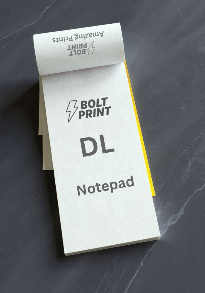 With a focus on quality and durability, our DL Notepads are perfect for both personal use and corporate branding. Each pad is carefully bound to ensure it stands the test of time, providing you with a reliable writing surface day in, day out. Embrace a professional look with Bolt Print’s DL Notepads that cater to all your writing needs with style and efficiency.